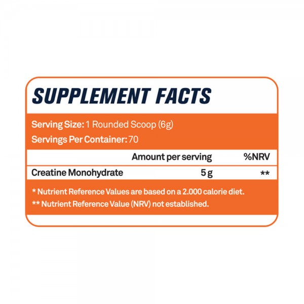 Ovaj dodatak u prahu, sa osvežavajućim ukusom pomorandže, sadrži visokokvalitetni mikronizovani kreatin monohidrat koji doprinosi povećanju fizičkih performansi tokom kratkotrajnih napora.
